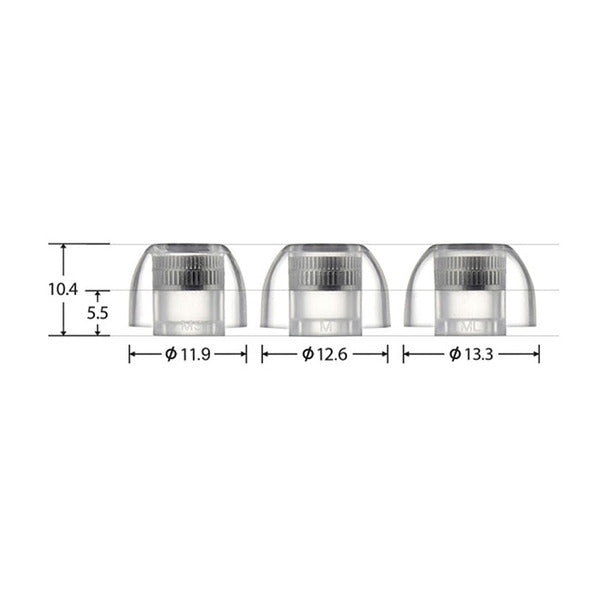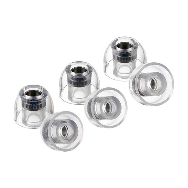 『SednaEarfit mithryl』は、金属アレルギーに強い外科医療で使用されるサージカルステンレスを音導コアに採用した一体成型のハイブリッドイヤーピースです。楽器のようにステンレス音導管の反響を利用することで、装着したイヤホンのサウンドに美しい響きと音色、広い空間表現を付加します。イヤホンノズルと金属コアの接触によるノズル先端の傷防止のため、独自の内部シリコンリング仕上げを採用。素材には米国FDAの安全基準をパスした米国製プレミアムLSR(リキッドシリコンラバー)を採用。優れた耐熱性、酸化抵抗性、表面張力、低温柔軟性を有し、良好な誘電体特性等の固有特性を持つ合成/弾性の重合体で、柔らかく低圧迫、程よい摩擦抵抗と固定力による落下防止、かゆみ等に対しての低刺激性、そして高い耐久性を高次元で実現しています。そして、耳に触れる部分に向かうほど厚みが薄くなる独自のテーパード型構造設計を採用し、低圧迫で快適な装着感と高遮音を両立。また傘部にはサイズマーキングを施しています。独自の金型で高い品質と堅牢性を確保するAZLAならではの二重構造設計により、イヤホンノズルとの固定力を高める最適な軸部厚と軸部が傘部より⾧い軸部⾧のキノコ型形状を採用しています。(対応ノズル先端直径:4.5-6 mm)。