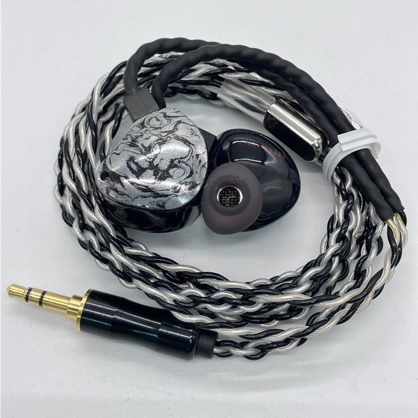 □着脱式ケーブル □イヤーチップ3種・3サイズ ・シリコン2段タイプ(S/M/L各1ペア) ・フォームタイプ黒2ペア □クリーニングブラシ □ゴムバンド2点 □ラウンドケース □ペリカンケース □カラビナ
