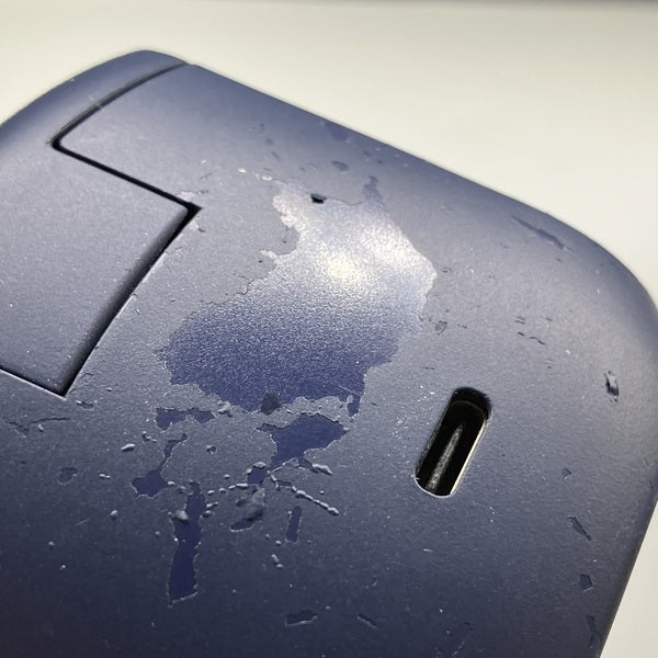 左右ハウジングノズル周りに汚れ、充電端子に緑化、生活臭、充電ケースに傷/汚れ/コーティング剥げ、充電端子に緑化あり