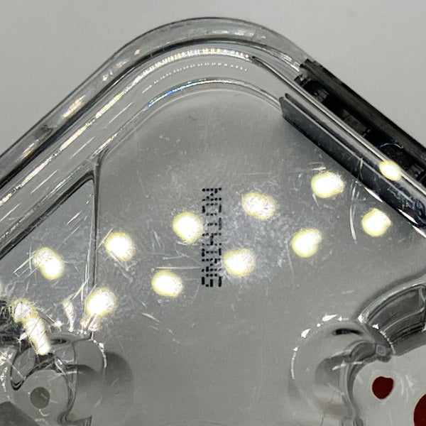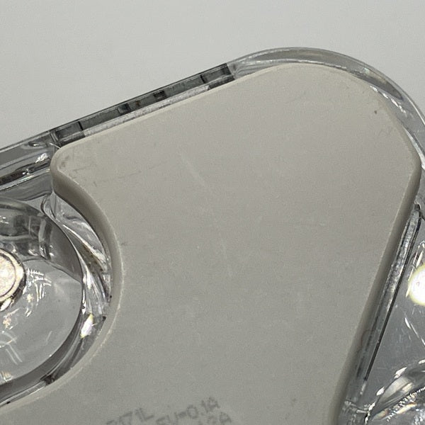 R側ハウジングに小さな打痕、左右ハウジング溝/ノズルフィルターに汚れ、充電ケースに傷/汚れあり