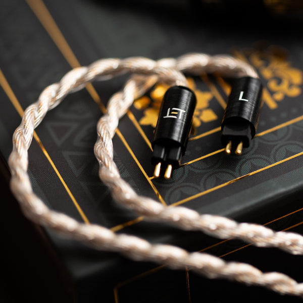 Sonnet of Adamは、Parnassusシリーズのフラッグシップモデルとして、金銀合金、金メッキ銀、金メッキ銅の三種の導体を巧みに組み合わせたトリプルブレンド構成を中核に据えた、新世代のフラッグシップケーブルです。23AWG・4ワイヤー構成により、信号伝送におけるエネルギー感と安定性を大幅に向上。密度・柔軟性・取り回しのバランスまで精密に計算された設計が特徴です。内部構造には、ELETECHが新たに設計した高分散ジオメトリを採用。各ワイヤーは複数の極細導体を束ねた構造となっており、表皮効果や歪みを抑制しつつ、可聴帯域全体にわたる情報伝達能力を高めています。さらに4重撚り線デザインによって物理的安定性とノイズ耐性を強化し、信号の揺らぎを最小限に抑え、音像のフォーカスを明確にします。