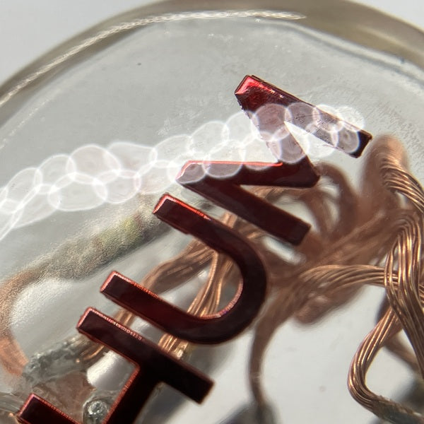 ロゴに剥離内部に接着材の劣化あり
