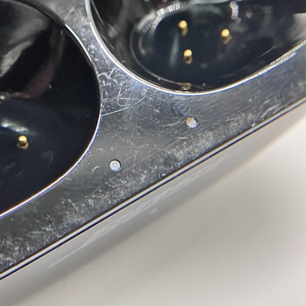 左右本体に傷、小さい打痕/フィルターに微細な汚れ/充電ケースに使用感、傷あり