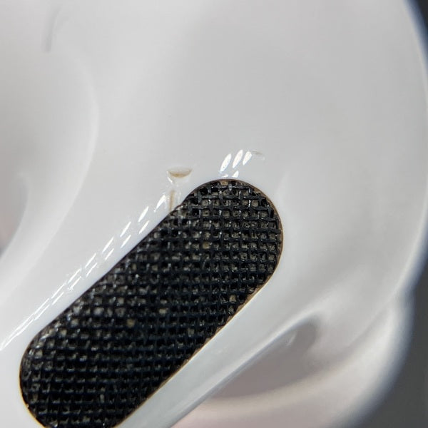 右筐体に傷、左右筐体溝、フィルターに汚れ 充電ケースに微細な傷、汚れあり